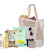 Zomerse vibes in een 2-in-1 koeltas (20L) met Sir James 101 Gin Tonic, Moj BIO limonade, Sal de Ibiza chips, zeezout popcorn en koelelementen. Fris, smaakvol en klaar voor onderweg!